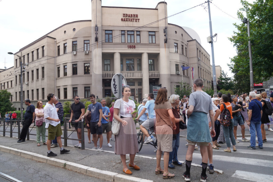 BEOGRAD - Grupa studenata u blokadi i građana koji ih podržavaju održali su večeras protest ispred Pravnog fakulteta u Beogradu i blokirali raskrsnicu između Bulevara Kralja Aleksandra i Beogradske, a kao razlog naveli su postupanje policije ispred tog fakulteta pre 10 dana.