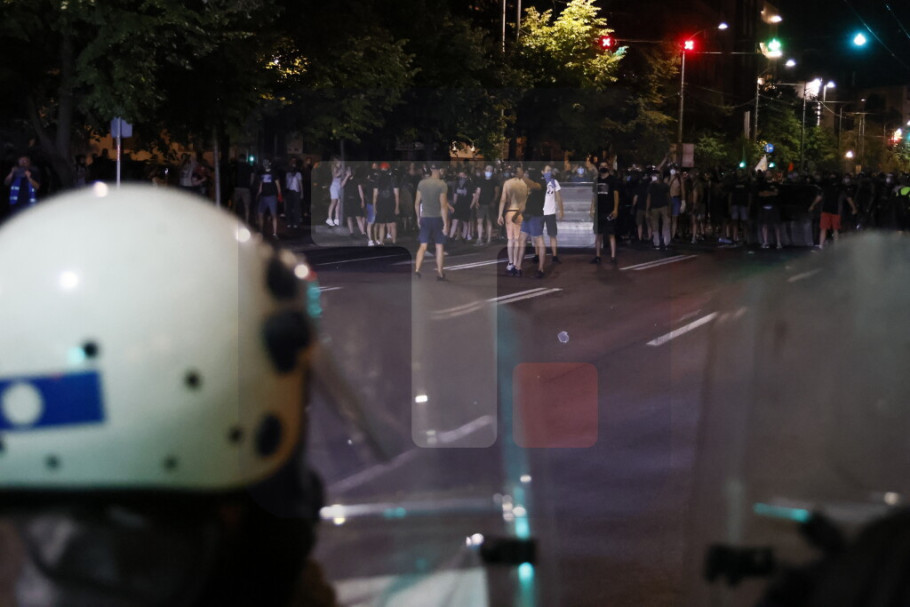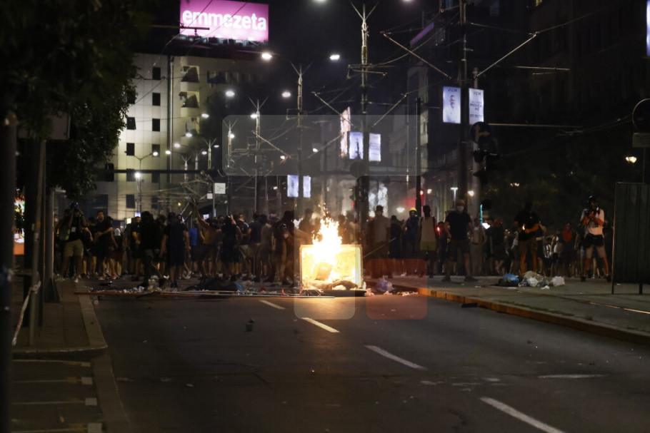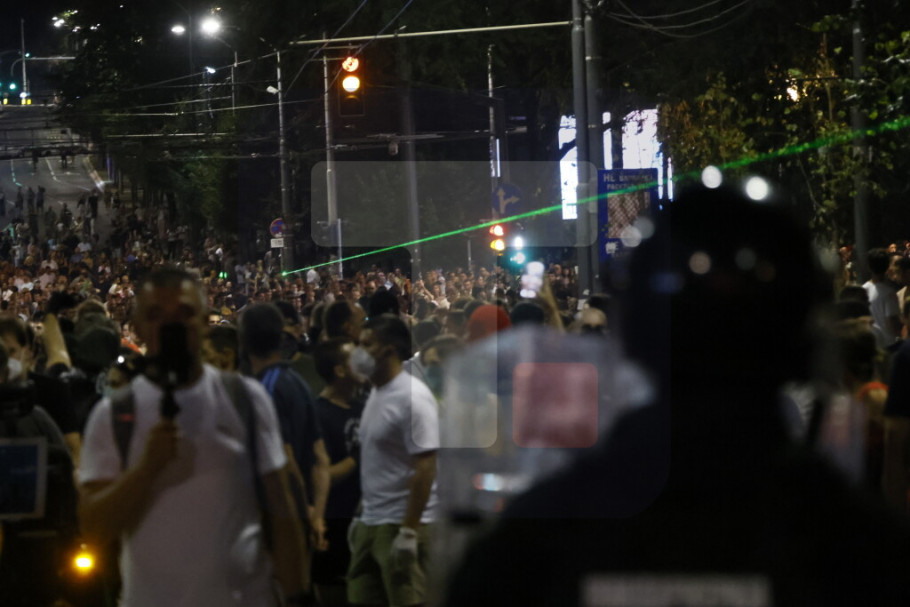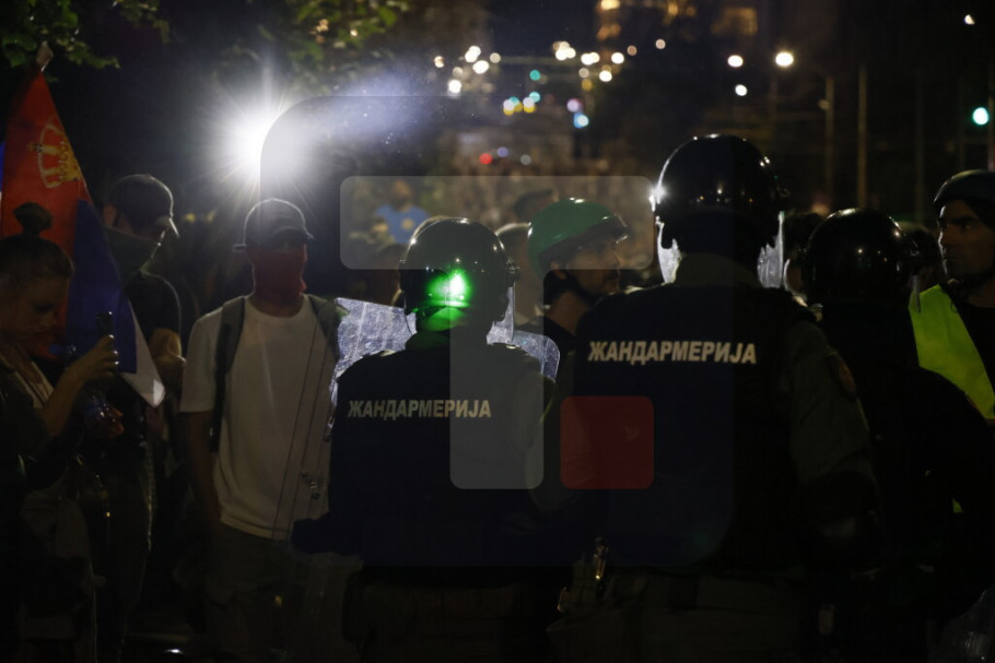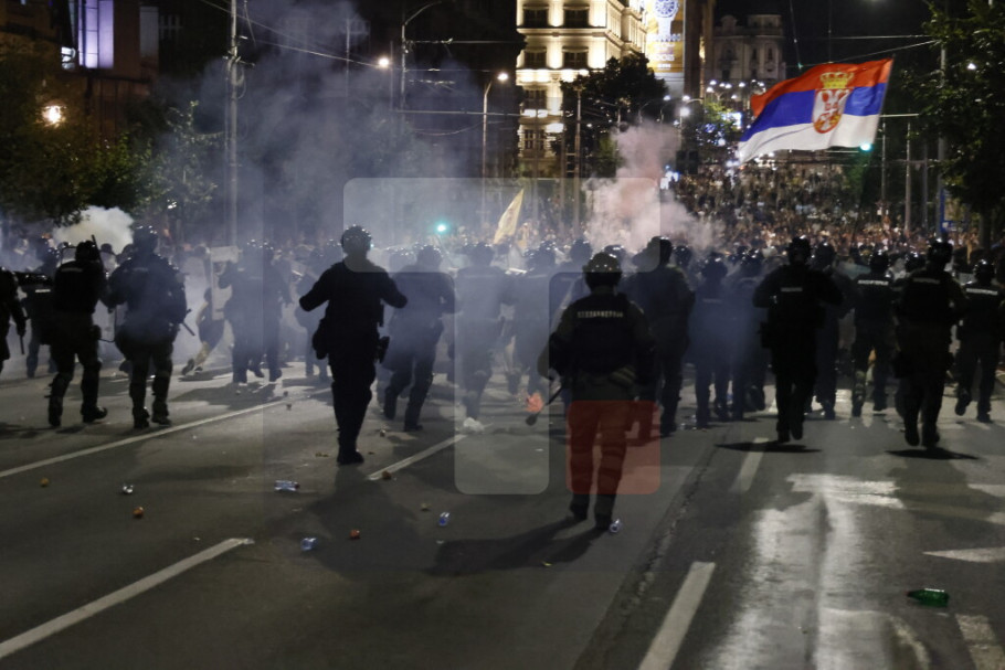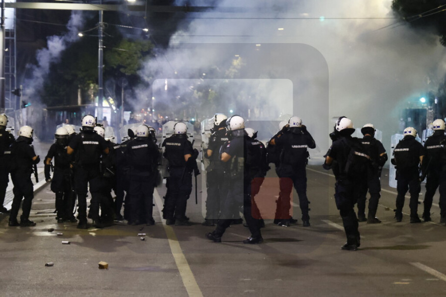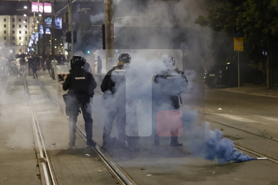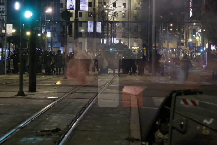 U Ulici Kneza Miloša i Nemanjinoj demonstranti su večeras ponovo napali policiju i na njih bacali pirotehnička sredstva i druge predmete, a policija je intervenilasa i potisnula ih ka Slaviji, a bačen je i suzavac.