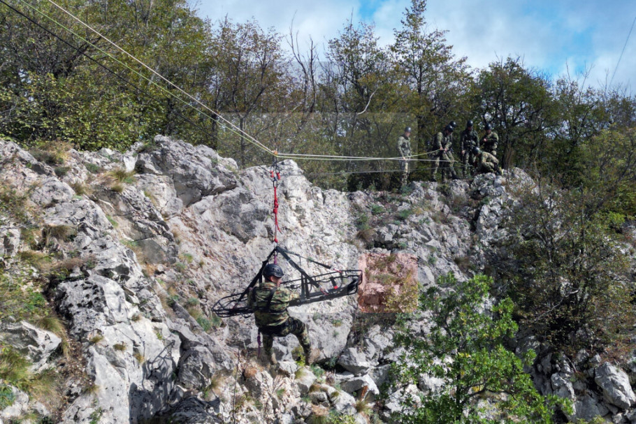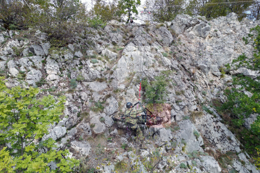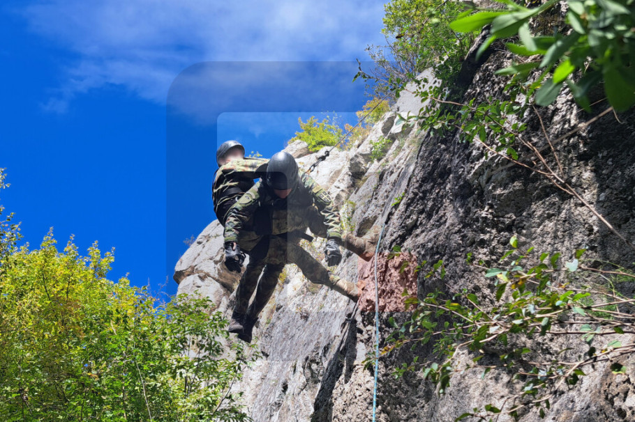 Posle uspešno savladanog teorijskog dela u kasarni, polaznici sada u vežbovnom prostoru realizuju sadržaje praktične obuke koji obuhvataju uvežbavanja tehnika i taktika kretanja po nepristupačnom terenu, veranja po strmim liticama i spasavanja i evakuacije ugroženih osoba.