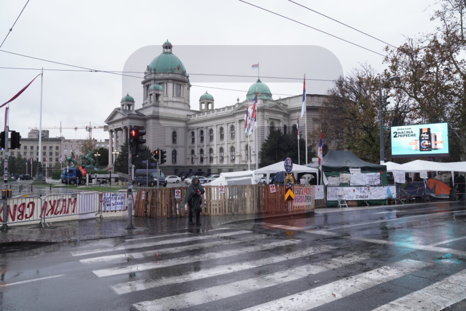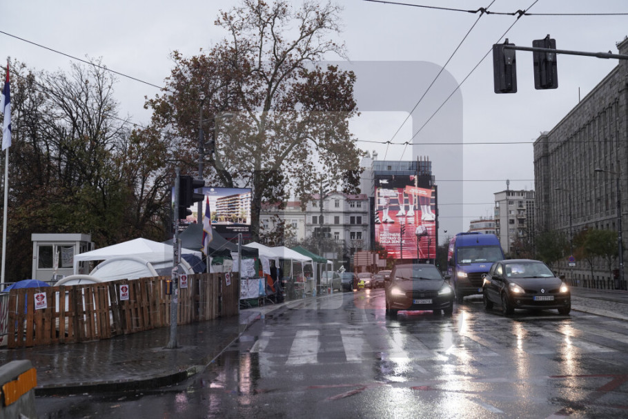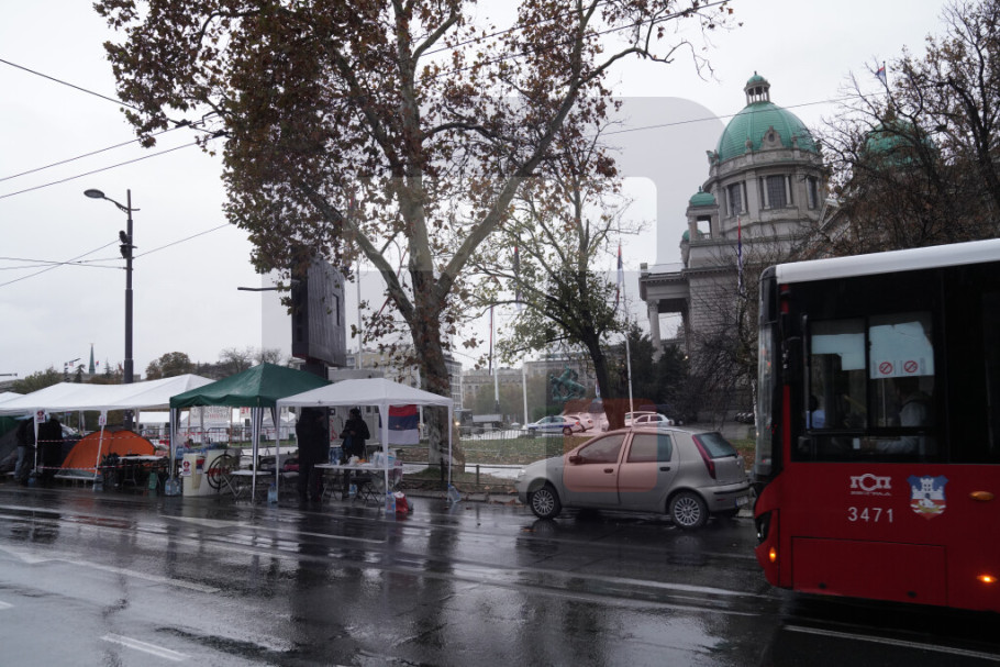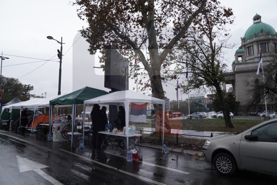 U blizini parlamenta, na raskrsnici Takovske i Bulevara kralja Aleksandra, nalazi se šator u kojem je Dijana Hrka, čiji je sin nastradao u padu nadstrešnice na Železničkoj stanici u Novom Sadu, a koja od nedelje, 2. novembra, štrajkuje glađu, dok je sa njom i manja grupa građana koji joj pružaju podršku.