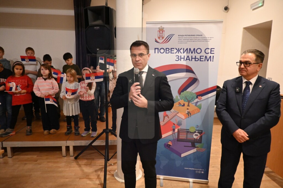 Učenici Srpske dopunske škole svečano su izveli himnu Republike Srbije, nakon čega su priredili recitaciju, kao i umetnički odlomak iz monodrame ''Karađorđe'', u izvođenju glumca Lepomira Ivkovića, što je posebno oduševilo prisutne, navodi se u saopštenju kabineta Milićevića.