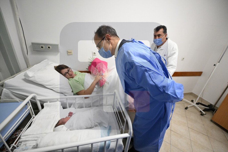 BEOGRAD - Premijer prof. dr Đuro Macut obišao je noćas prvu rođenu bebu u 2026. godini u Ginekološko akušerskoj klinici - Višegradska i izrazio je nadu da će se u budućnosti rađati još više dece.