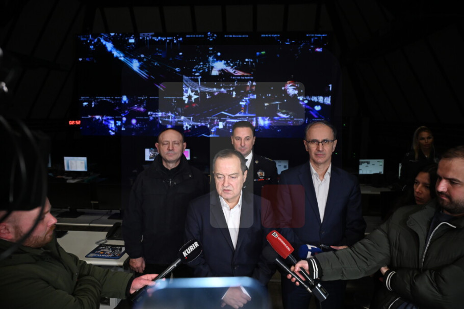 BEOGRAD - Premijer prof. dr Đuro Macut obišao je noćas zajedno sa ministrom unutrašnjih poslova Ivicom Dačićem komandno-operativni centar Policijske uprave za Grad Beograd i poželeo je svima mirniju 2026. godinu.
