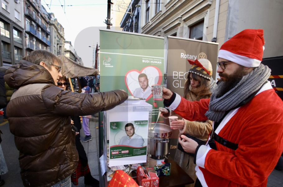 "Građani danas mogu da pomognu tako što će pristupiti ovde uz donaciju, mi uz donaciju delimo čajeve, građani mogu pomoći i na taj način što mogu da uplate novac na broj telefona, kako je prikazano na ovom baneru ovde za organizaciju 'Budi human'. Odziv građana je izuzetno dobar, akcija je u skladu sa današnjim danom, prvim danom u Novoj godini gde je veoma pozitivna atmosfera i građani se odazivaju se i svi su željni da pomognu", rekao je on.