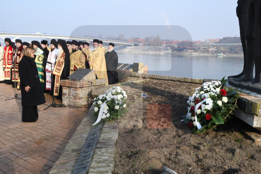 NOVI SAD - U Novom Sadu je danas polaganjem venaca na spomenik na Keju žrtava racije obeležena 84. godišnjica pogroma u Novosadskoj raciji kada je ubijeno više od 1.300 Novosađana, a ovogodišnji pomen služio je patrijarh srpski Porfirije.