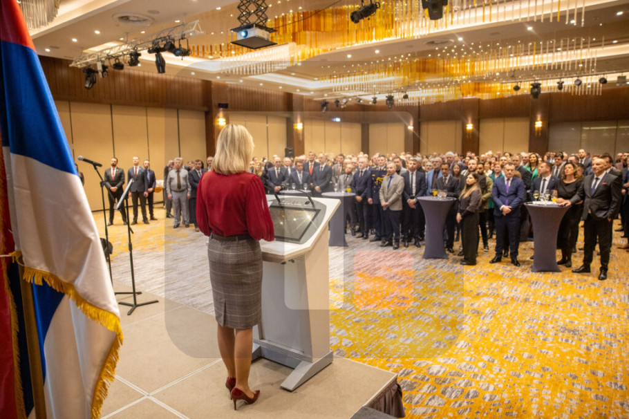 U ime Vlade Srbije prisutnima na prijemu se obratila Macura, koja je istakla da Sretenje simbolizuje težnju ka slobodi, pravdi i uređenom društvu zasnovanom na vladavini prava i jednakosti.