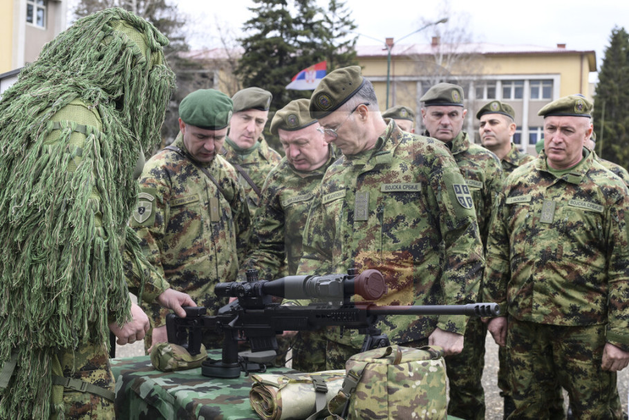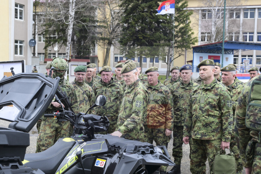 KRALJEVO - Načelnik Generalštaba Vojske Srbije general Milan Mojsilović obišao je danas, sa saradnicima, deo jedinica Druge brigade kopnene vojske koje su razmeštene u kasarni "Ribnica" u Kraljevu, gde je prisustvovao i obuci vojnika za upotrebu izviđačkih i borbenih dronova.