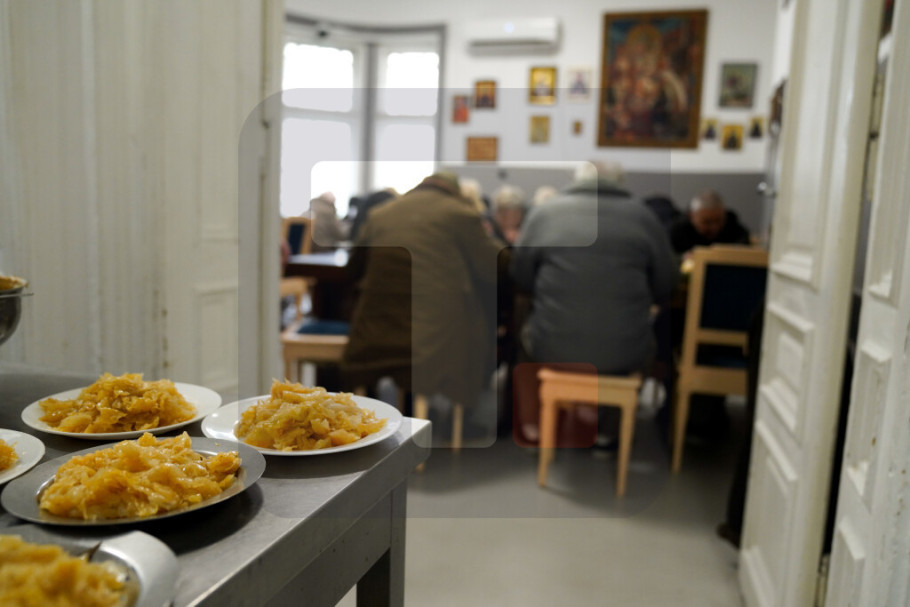 Ona je u prostorijama crkvene kuhinje ručala sa beskućnicima i korisnicima VDS-a koji tokom cele radne nedelje u kuhinji mogu da dobiju obrok koji pripremaju volonteri.