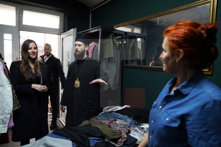 Tamara Vučić je obišla i prostorije u kojima beskućnici i siromašni mogu da dobiju polovnu garderobu koju doniraju građani, kao i da koriste kupaonicu i usluge frizerskog salona.