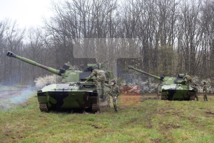 KRALJEVO - Zajednička obuka posluga iz artiljerijskih diviziona Kopnene vojske na usavršenim samohodnim haubicama 122 mm 2S1 M-21 realizovana je na poligonu Karapandža kod Kraljeva, saopštilo je danas Ministarstvo odbrane.