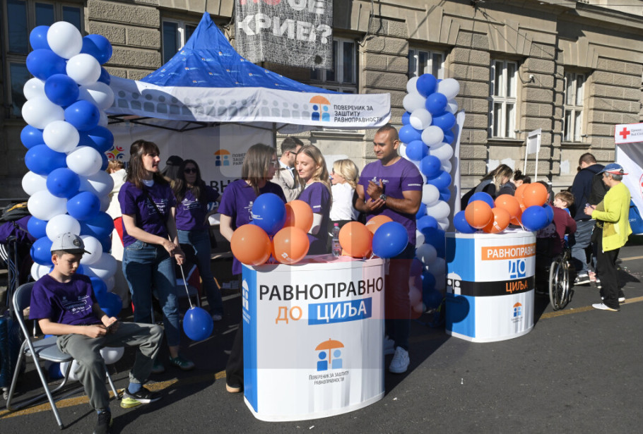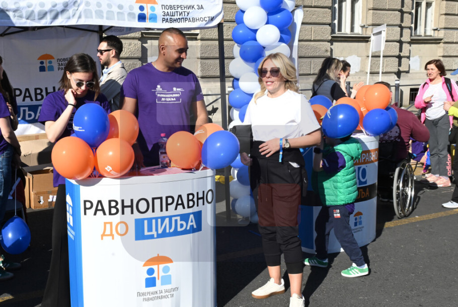BEOGRAD - Poverenik za zaštitu ravnopravnosti zajedno sa Sportskim savezom osoba sa invaliditetom Beograd održao je danas akciju "Ravnopravno do cilja" u okviru 39. Beogradskog maratona, a pomoćnica poverenika za zaštitu ravnopravnosti Jelena Kotević izjavila je da ta manifestacija ima kao ideju da ukaže na probleme i diskriminaciju sa kojima se susreću osobe sa invaliditetom u oblasti sporta, ali i svih drugih oblasti života.