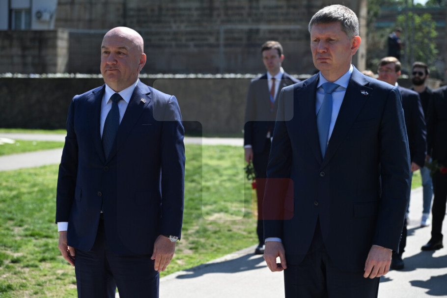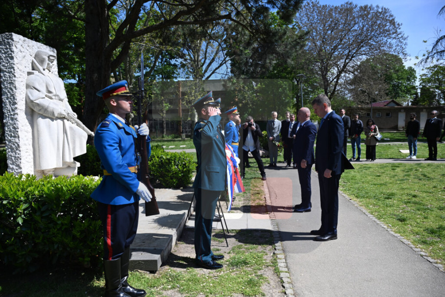 BEOGRAD - Ministar bez portfelja zadužen za oblast međunarodne ekonomske saradnje Nenad Popović i ministar ekonomskog razvoja Ruske Federacije Maksim Rešetnjikov danas su, uz državne i vojne počasti, položili vence na Spomenik oslobodiocima Beograda 1944. godine i odali počast stradalima u borbi za oslobođenje Beograda u Drugom svetskom ratu.