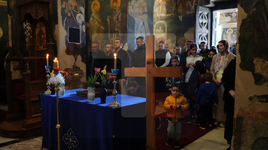 GRAČANICA - Posle služenja večernje, u crkvi Uspenja Presvete Bogorodice u manastiru Gračanica, iznošenjem plaštanice obeležen je najtužniji dan u hrišćanstvu, dan stradanja Isusa Hrista, Veliki petak.