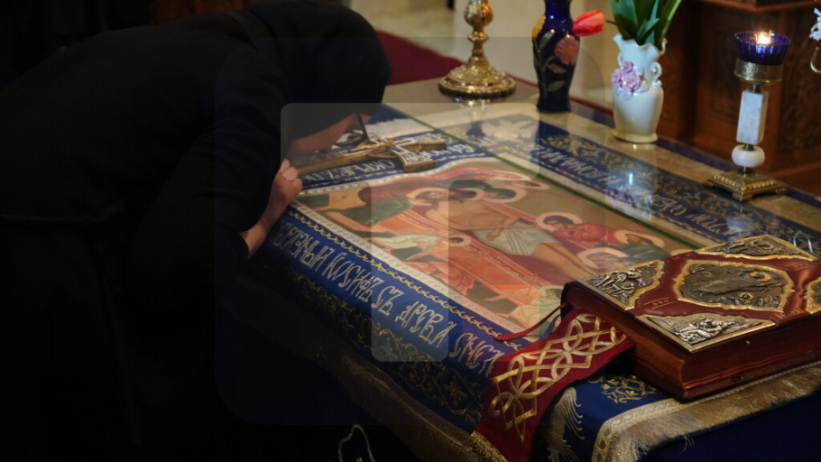 Pred velikim brojem vernika, uz pojanje monahinja manastira, sveštenici su izneli plaštanicu ili platno u koje je, prema crkvenom učenju, zamotan Isus Hrist posle skidanja sa krsta na kojem je razapet.