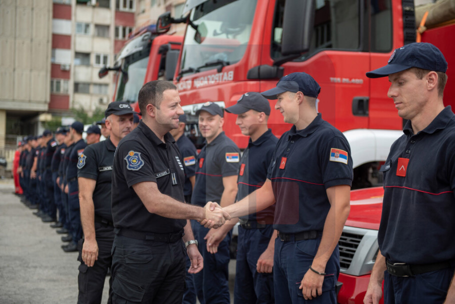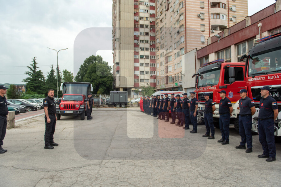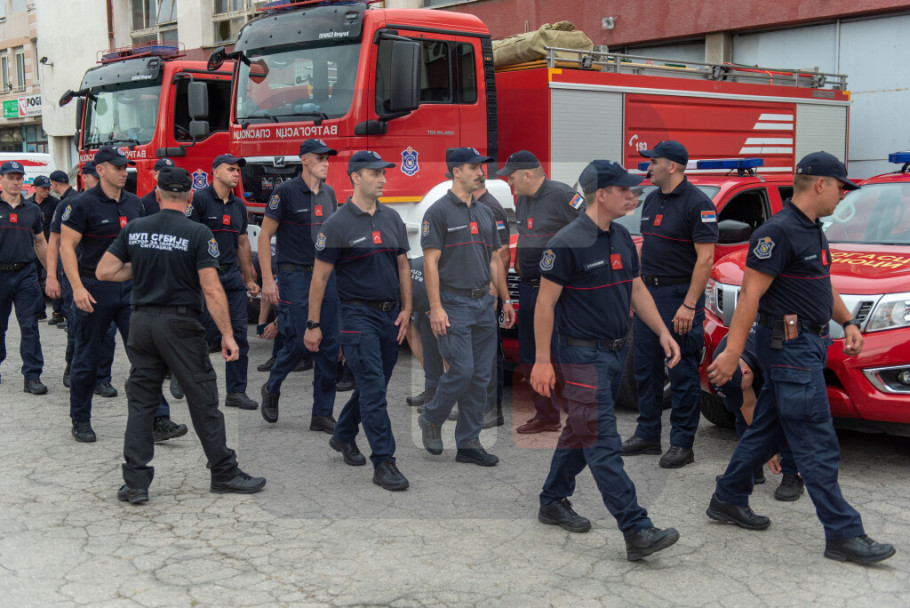 Vršilac dužnosti pomoćnika ministra unutrašnjih poslova i načelnik Sektora za vanredne situacije Luka Čaušić je napomenuo da su od navedenog broja 36 vatrogasci-spasioci koji idu sa 14 vatrogasnih vozila i dve prikolice.