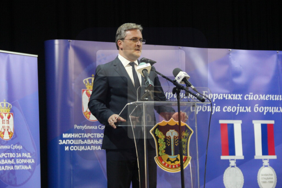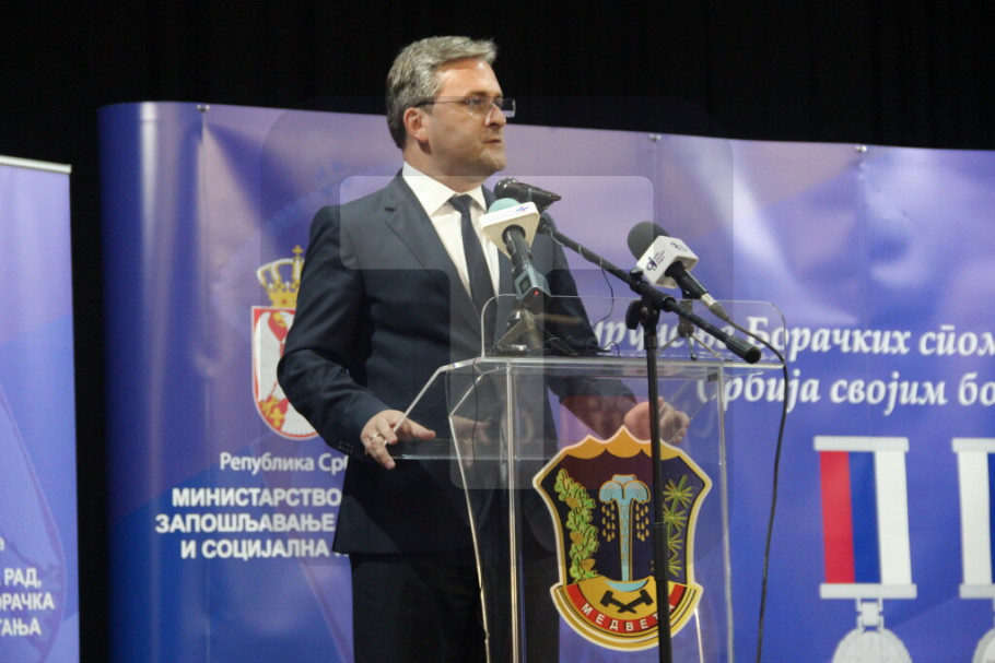 MEDVEĐA - Ministar za rad, zapošljavanje, boračka i socijalna pitanja Nikola Selaković rekao je danas u Medveđi da je njegovo ministarstvo danas pokrenulo veliku akciju dodele Boračkih spomenica i najavio pogodnosti za nosioce boračke legitimacije.
