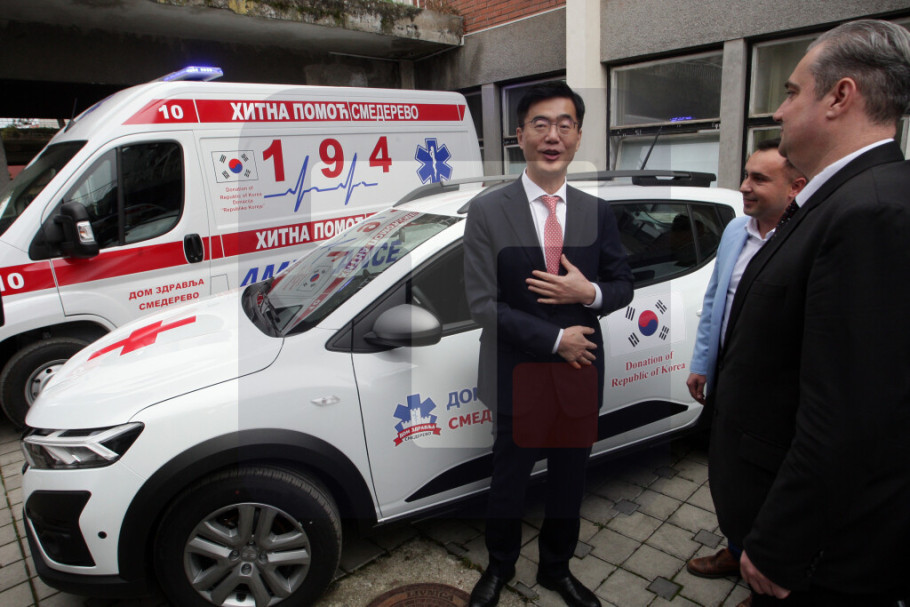 "Danas se, usled odlične saradnje Republike Koreje i Srbije, Domu zdravlja Smederevo uručuju četiri vozila - dva saniteta i dva putnička vozila u vrednosti od 150.000 evra", naveo je Milošević.