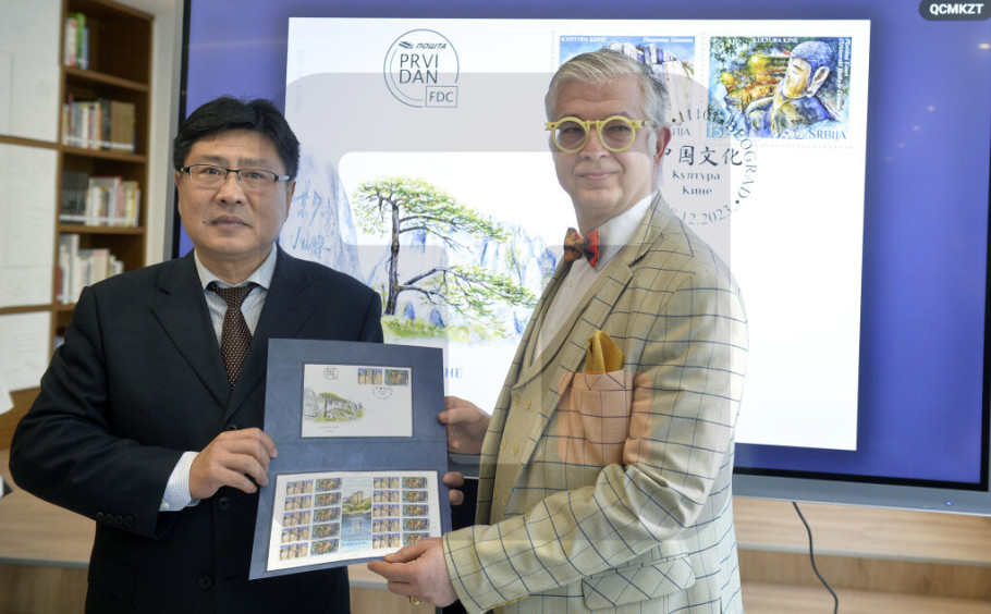 Direktor radne jedinice Pošta Srbije Srbija marke Adam Sofronijević uručio je otpravniku poslova ambasade Kine Džeu Džangu i direktorku KKC-a Vangu Jenu Lijangu izdanja prigodnih poštanskih maraka ''Srbija-Kina: Deset godina od uspostavljanja incijative ''Pojas i put''' i ''Kultura Kine''.