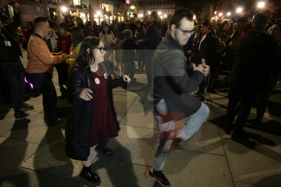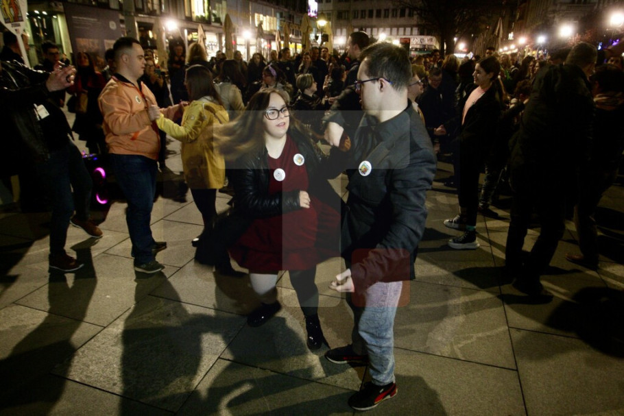 Na Trgu republike je plesna grupa osoba sa Daunovim sindromom i drugih lica sa različitim smetnjama u razvoju uz podršku plesne škole "Just Dance" plesala uz poznate numere.