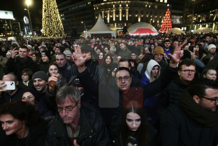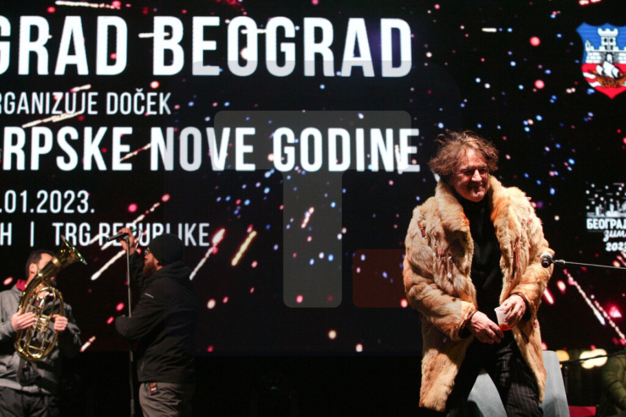 BEOGRAD - Srpsku Novu godinu dočekali su mnogobrojni Beograđani na ispunjenom Trgu Republike uz nastup Gorana Bregovića i Orkestra svadbi i sahrana, sa pevačima Mladenom Vojičićem Tifom i Alenom Islamovićem.