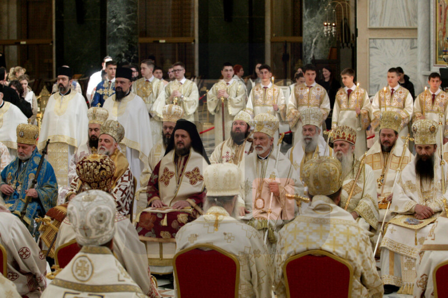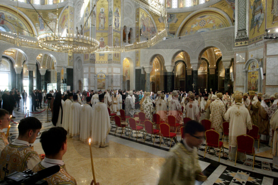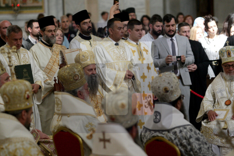 Na kraju liturgije arhijereji su, kao i uvek na početku Sabora, prizvali Sveti duh i održali svečanu sednicu u kripti Hrama Svetog Save.