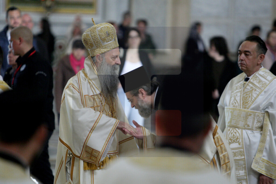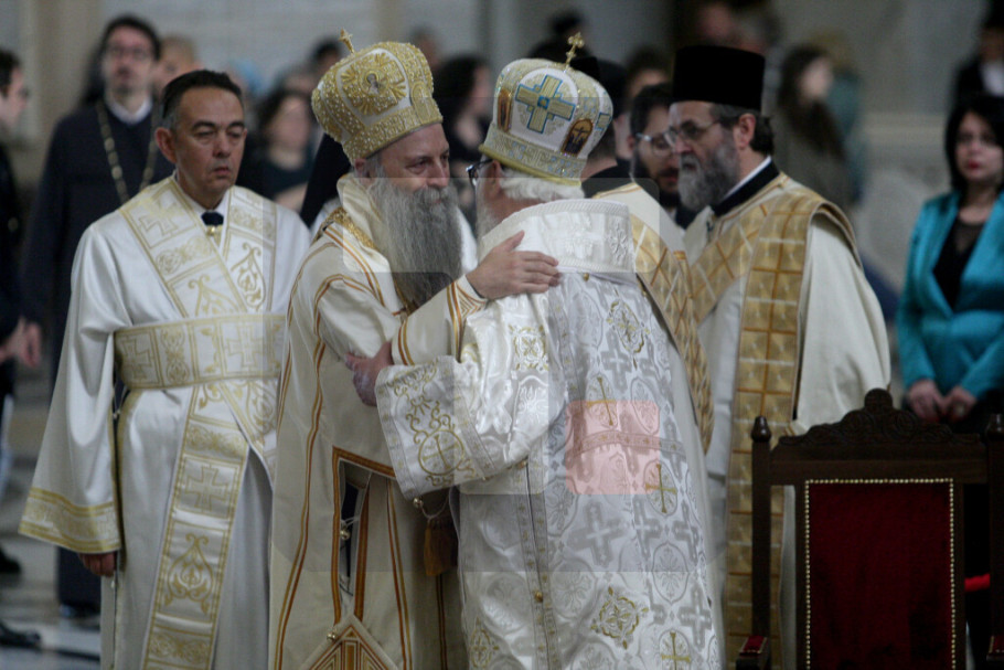 "Međutim, usled skandalozne odluke prištinskih vlasti da zabrane ulazak patrijarhu srpskom i otačastvenim arhijerejima na Kosovo u Metohiju sveta liturgija i čin Priziva Duha svetog služeni su jutros u hramu Svetog Save na Vračaru", navedeno je u saopštenju.