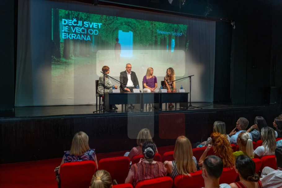 KRAGUJEVAC - Kompanija Telekom Srbija, održala je u Pozorištu za decu i mlade u Kragujevcu, treću po redu tribinu "Dečji svet je veći od ekrana" sa ciljem da se obezbedi prostor u kome se može čuti mišljenje stručnjaka.