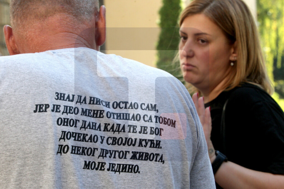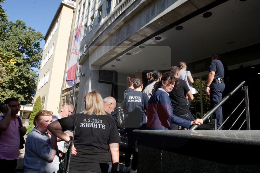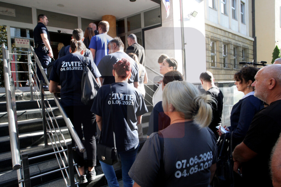 Kako Tanjug saznaje, članovi Blažićeve porodice su stigli ranije u sud tako da se na ulazu u sud nisu sreli sa oštećenima. Oštećeni nose crne majice na kojima je ispisan datum 4.5.2023. sa porukom “Živite”. Stražari su ih sproveli u deo sudnice namenjen publici odakle će pratiti današnje suđenje.
