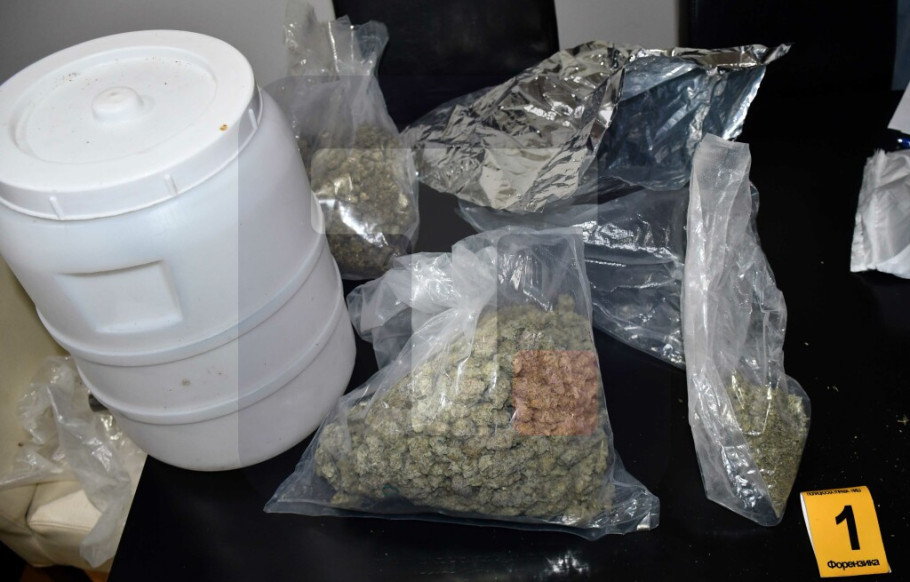 Pretresom stana i drugih prostorija koje A. P. koristi, policija je pronašla sedam paketa sa oko 1,8 kilograma materije za koju se sumnja da je marihuana i vagicu za precizno merenje.