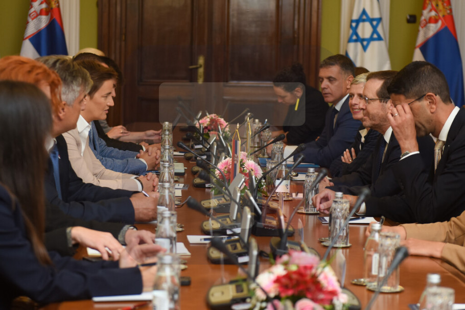 BEOGRAD - Predsednik Izraela Isak Hercog, koji danas boravi u poseti Srbiji, razgovarao je u zgradi Narodne skupštine sa predsednicom parlamenta Anom Brnabić.