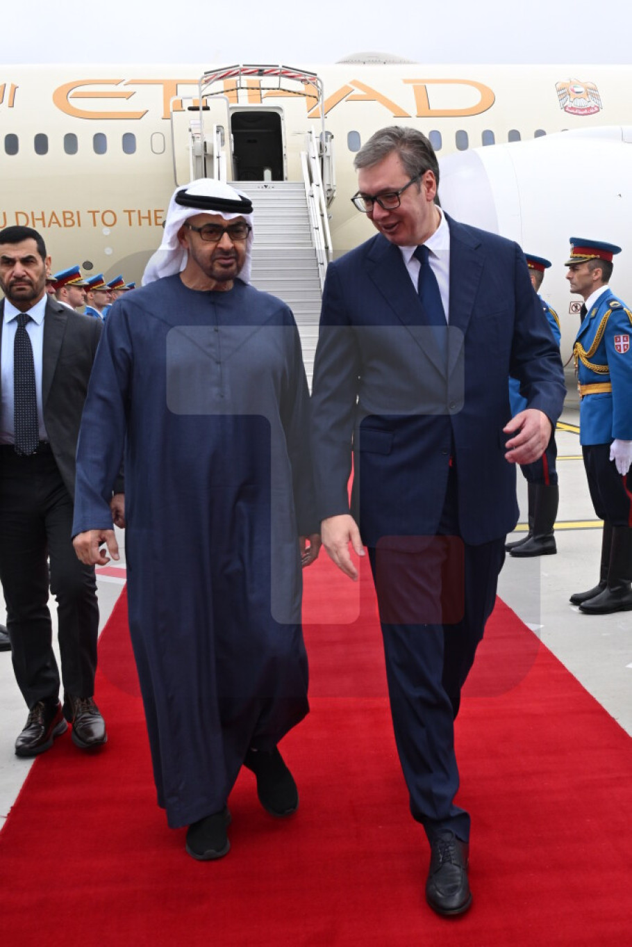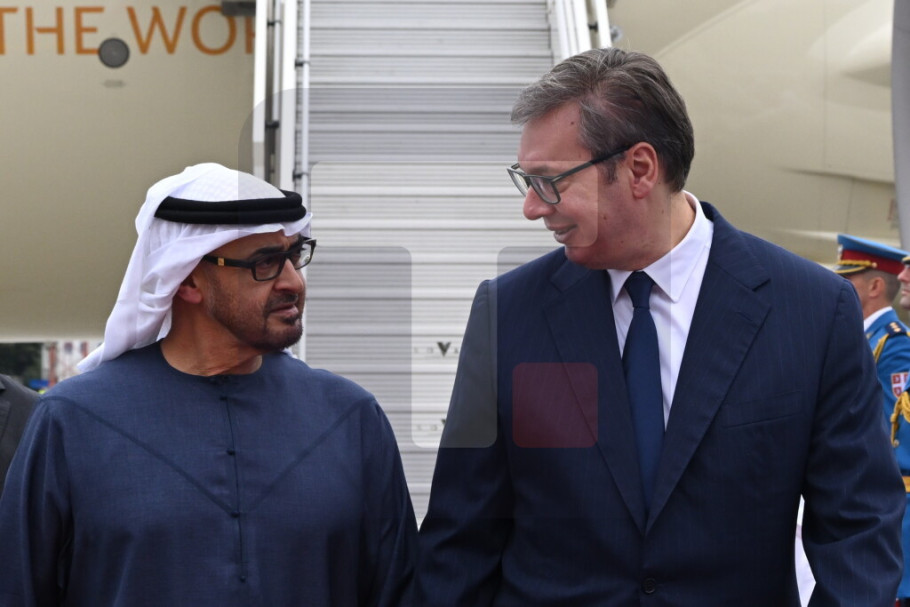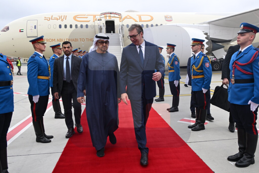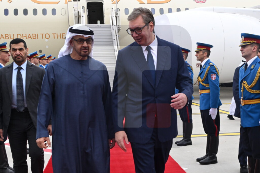 Predsednik Srbije Aleksandar Vučić dočekao je danas na Aerodromu Nikola Tesla predsednika Ujedinjenih Arapskih Emirata šeika Mohameda bin Zajeda al Nahjana, koji boravi u radnoj poseti Srbiji.