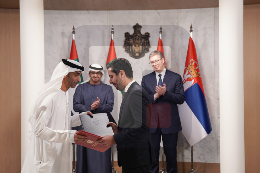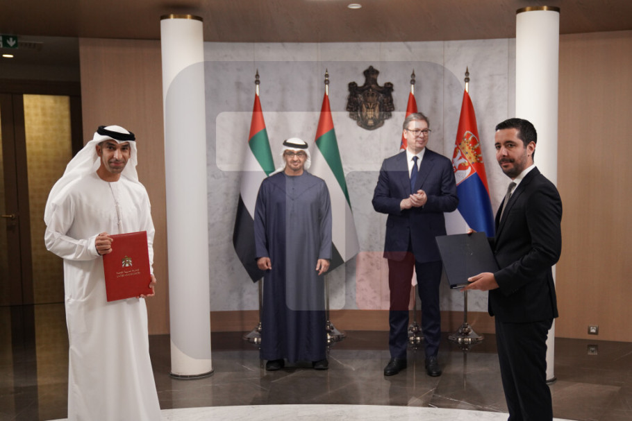 Predsednik Srbije Aleksandar Vučić i predsednik Ujedinjenih Arapskih Emirata (UAE) Mohamed bin Zajed al Nahjan prisustvovali su danas potpisivanju Sveobuhvatnog sporazuma o ekonomskom partnerstvu između Vlade Srbije i Vlade Ujedinjenih Arapskih Emirata.