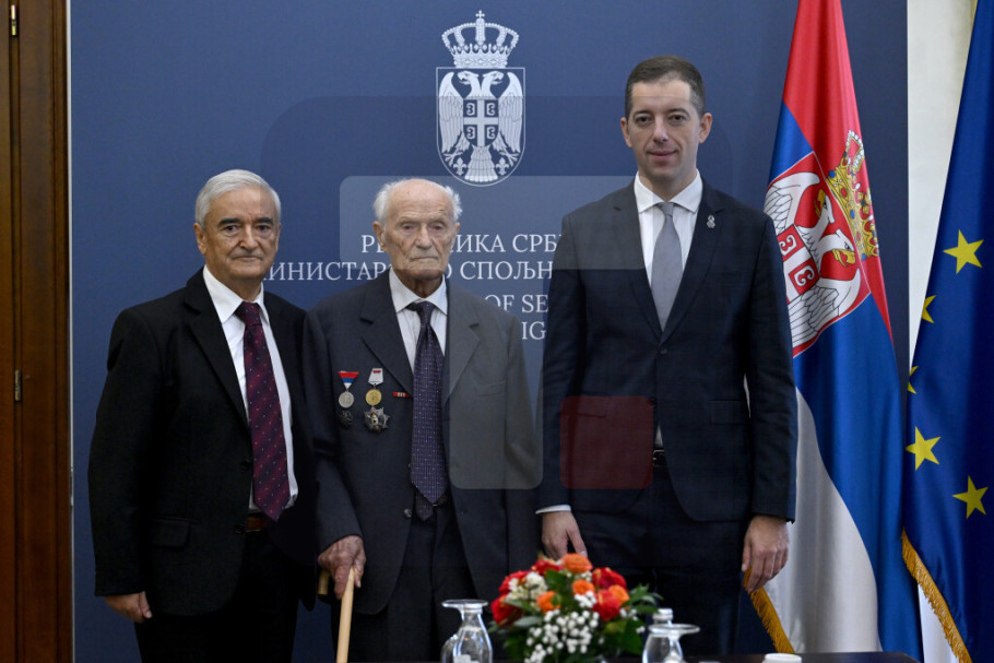BEOGRAD - Ministar spoljnih poslova Srbije Marko Đurić razgovarao je danas sa Miloradom Rakićem iz Užica, koji je sa svojom jedinicom u oktobru 1944. godine učestvovao u operaciji oslobađanja Beograda.