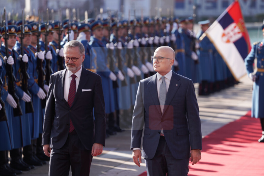 BEOGRAD - Predsednik Vlade Srbije Miloš Vučević dočekao je ispred Palate "Srbija" predsednika Vlade Češke Petra Fijalu koji boravi u zvaničnoj poseti Srbiji.