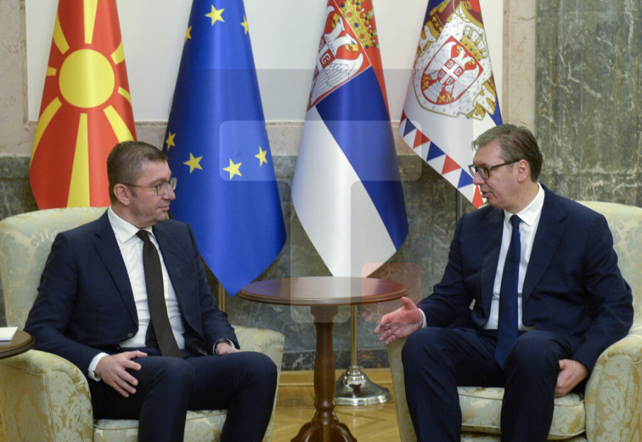 BEOGRAD - Predsednik Srbije Aleksandar Vučić sastao se danas sa premijerom Severne Makedonije Hristijanom Mickoskim sa kojim je razgovarao o jačanju odnosa i zajedničkim inicijativama za stabilniju budućnost građana kao i ekonomskim projektima.