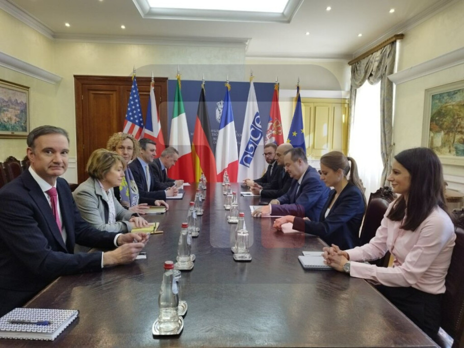 BEOGRAD - Prvi potpredsednik Vlade i ministar spoljnih poslova Ivica Dačić, danas je sa ambasadorima zemalja Kvinte pri OEBS u Beču, razgovarao o situaciji na KiM, bezbednosnoj situaciji u Evropi i evrointegracijama Srbije.