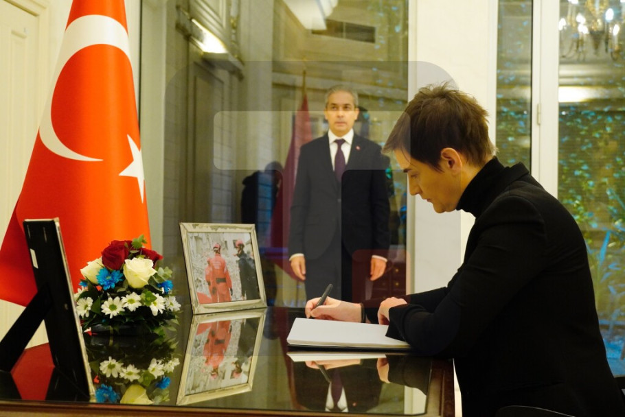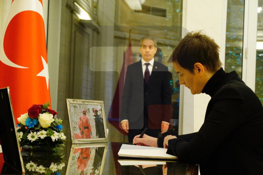 BEOGRAD - Predsednica Vlade Srbije upisala se danas u knjigu žalosti u ambasadi Turske u Beogradu. "U ime Vlade Republike Srbije i u svoje ime, izražavam najdublje saučešće porodicama nastradalih u seriji razornih zemljotresa koji su pogodili vašu zemlju, a povređenima upućujem želje za što brži oporavak.