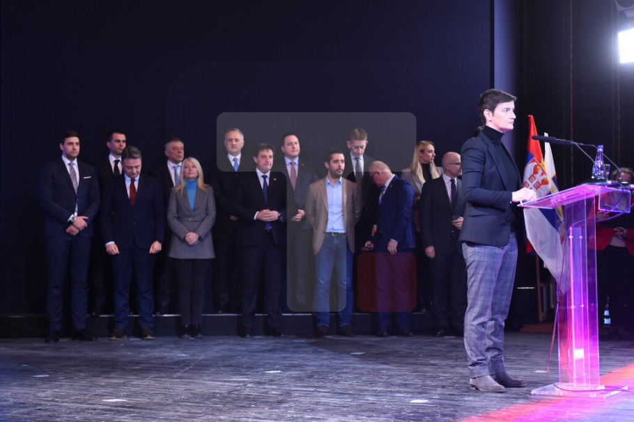 Brnabić je rekla da je 100 dana obeleženo napadima na Srbe na KiM, provokacijama i incidentima od strane Prištine, decembar bio jedan od najtežih meseci od 2008. godine, zahvalnost Vučiću jer je najveći teret preuzeo na sebe i uspeo da mudrom politikom sačuva mir i obezbedi stabilnost.