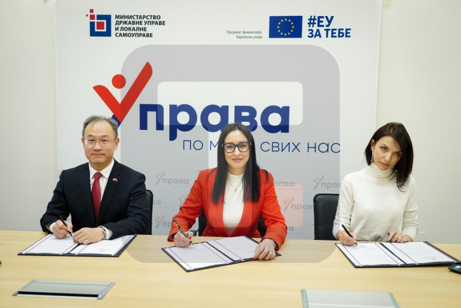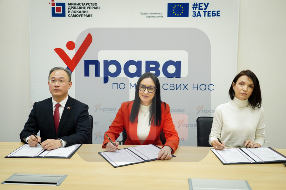 BEOGRAD - Ministarka državne uprave i lokalne samouprave Jelena Žarić Kovačević i ambasador Kine Li Ming potpisali su danas sporazum o donaciji 46 laptopova sa direktorima škola koje se nalaze na teritoriji slabije razvijenih lokalnih samouprava.