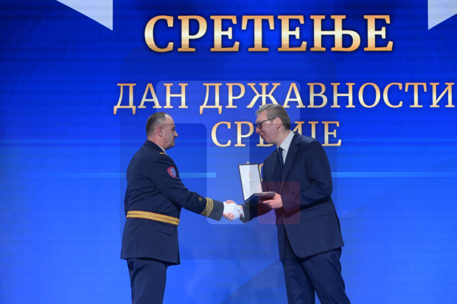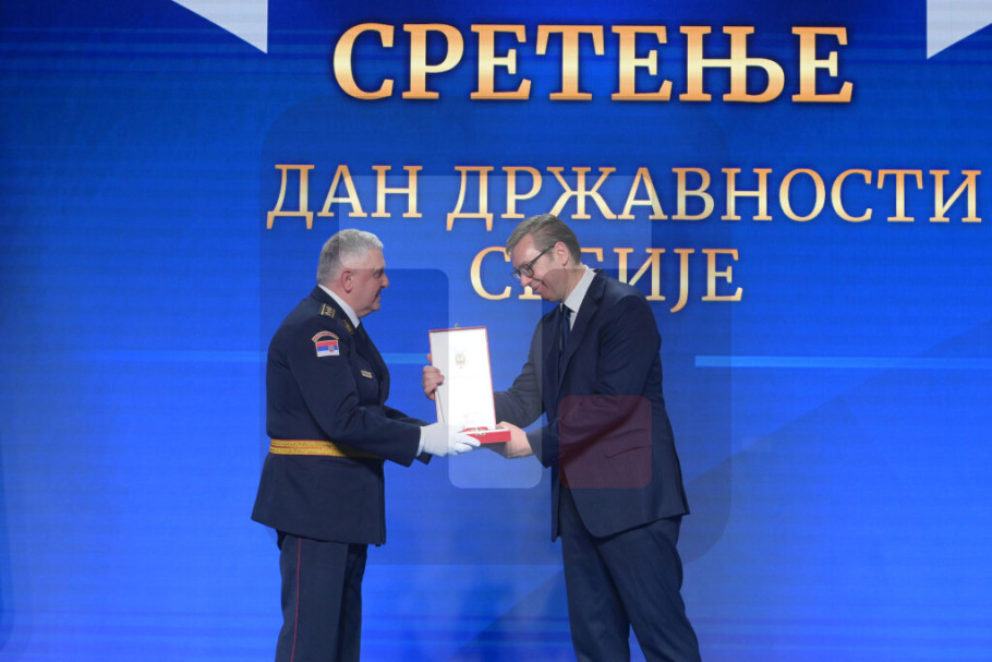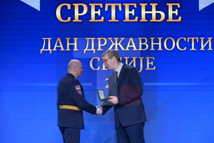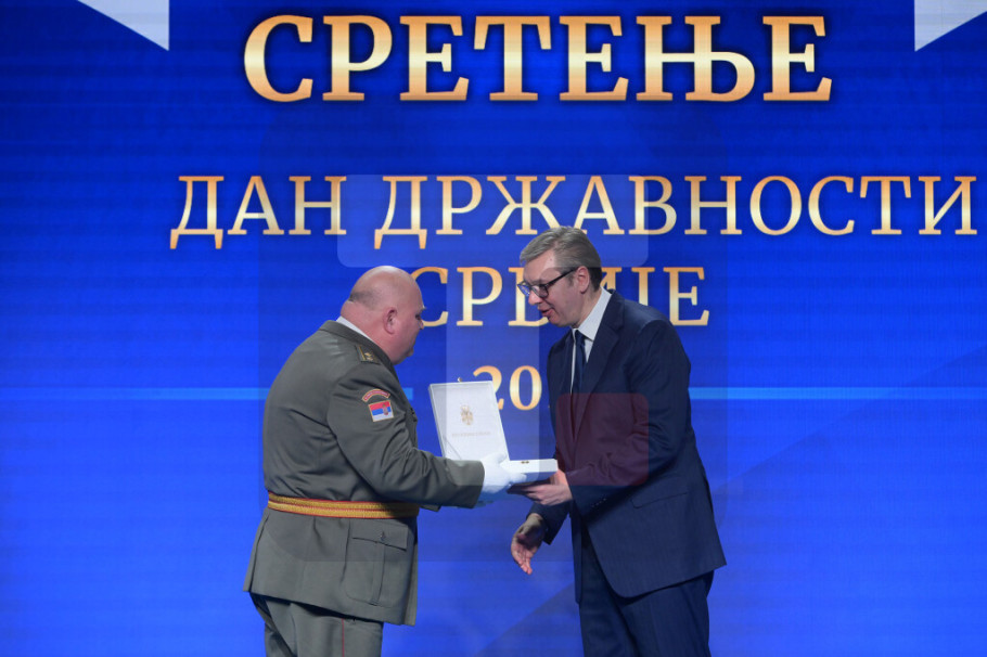 BEOGRAD - Povodom Sretenja - Dana državnosti Srbije predsednik Republike i vrhovni komandant Vojske Srbije Aleksandar Vučić uručio je danas odlikovanja Vojnomedicinskoj akademiji, Tehničkom remontnom zavodu NH "Đurđe Dimitrijević-Đura“ Kragujevac, Tehničkom remontnom zavodu "Čačak“ i Tehničkom opitnom centru, na svečanosti održanoj u Palati "Srbija“.