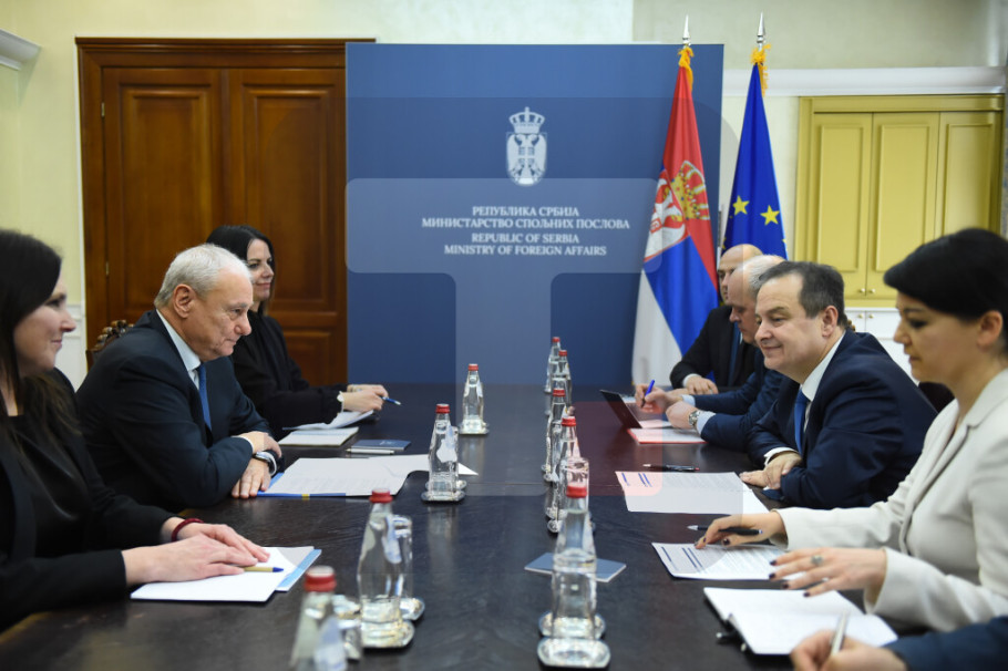 BEOGRAD - Prvi potpredsednik Vlade i ministar spoljnih poslova Ivica Dačić sastao se danas sa generalnim sekretarom Centralno-evropske inicijative Robertom Antonioneom, a u razgovoru je istaknuto da Srbija kao sukcesor jednog od četiri osnivača Centralno-evropske inicijative pridaje izuzetan značaj ovoj inicijativi.