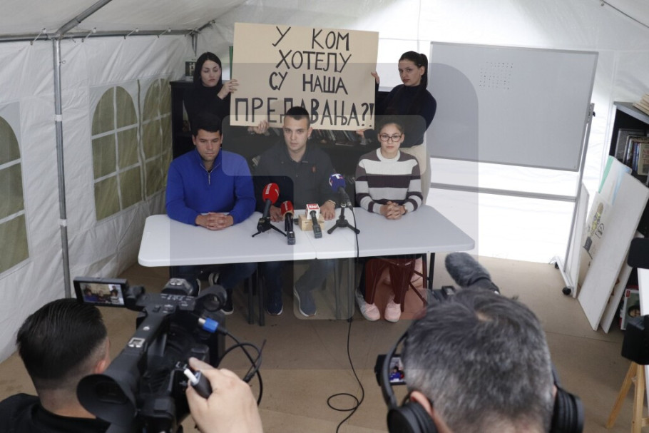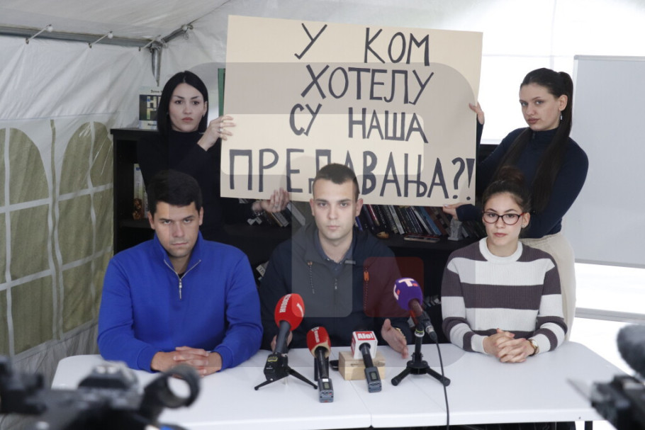 "Već gotovo šest meseci taj ugovor se krši. Želimo jednaka prava za sve studente, stop diskriminaciji, odgovorite na pitanja, odgovorite u koji hotel treba da dođemo da bismo slušali naša predavanja'', zaključio je Lalošević.