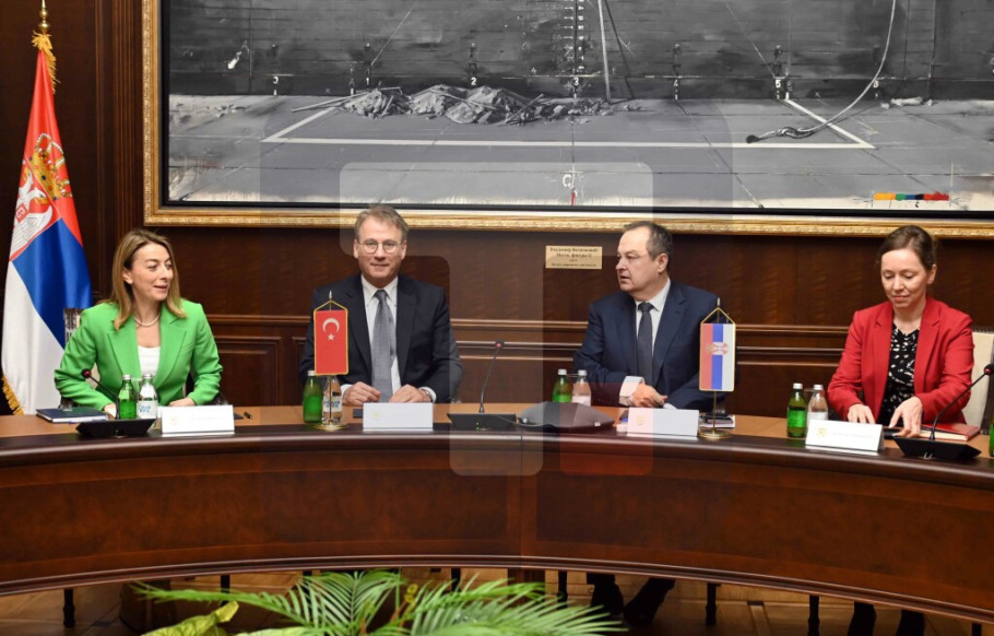 BEOGRAD - Ministar unutrašnjih poslova Ivica Dačić sastao se danas sa ambasadorom Turske u Srbiji Ilhanom Sajgilijem s kojim je razgovarao o saradnji dve zemlje u oblasti unutrašnjih poslova, a na sastanku je ocenjeno da je dosadašnja policijska saradnja u oblasti borbe protiv organizovanog kriminala i terorizma, kao i suzbijanja iregularnih migracija na vrlo visokom nivou.