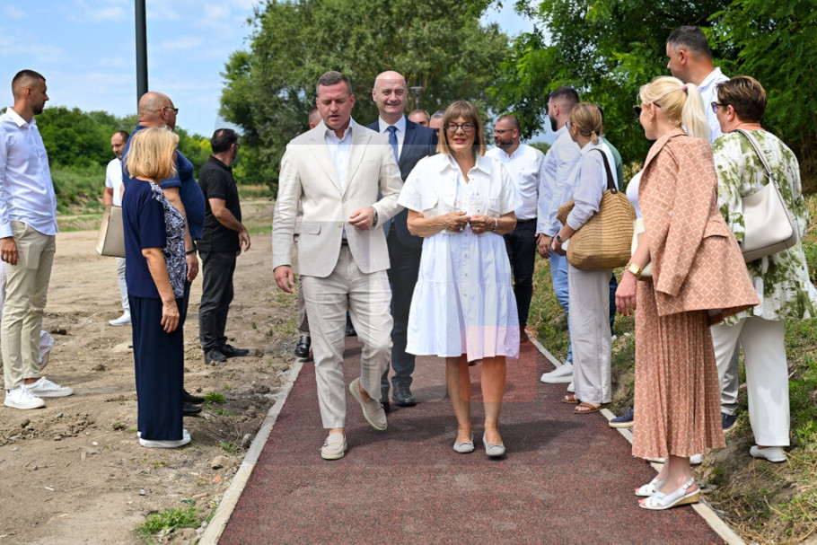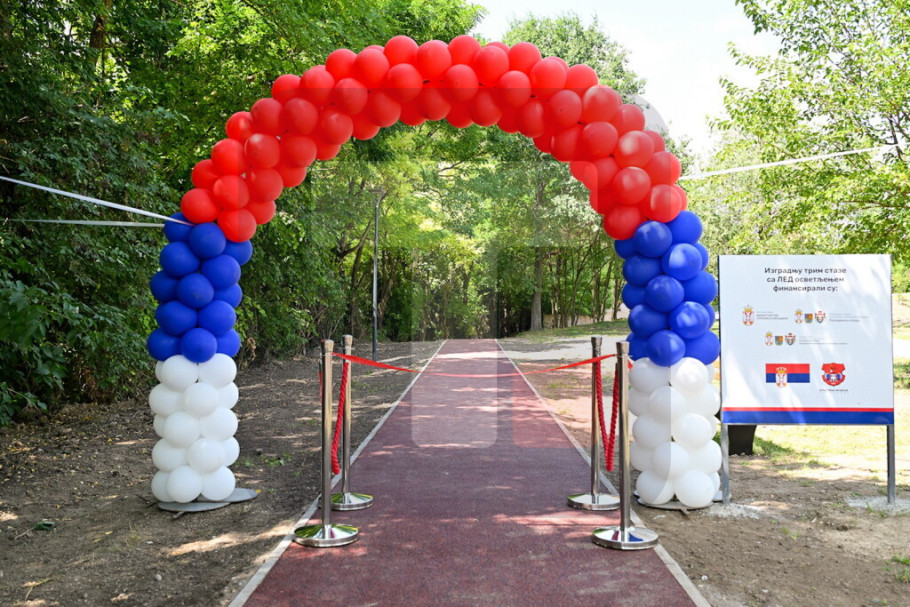 INĐIJA - Predsednica Pokrajinske vlade Maja Gojković i predsednik Opštine Inđija Marko Gašić otvorili su danas novoizgrađenu trim-stazu sa pametnom rasvetom u okviru turističko-rekreativnog kompleksa "Leje" u Inđiji.