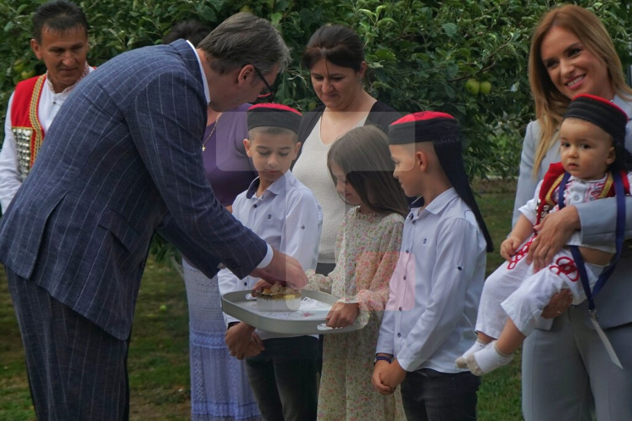 Predsednika Vučića dočekao je domaćin Rajko Radan sa porodicom.