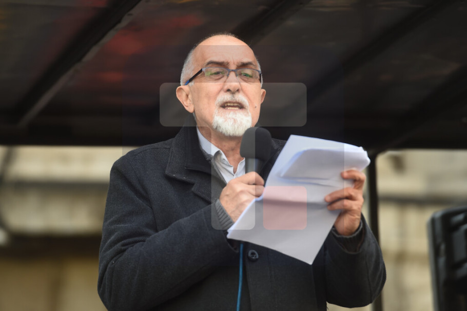 On je istakao "da je ovaj slučaj crvena linija na koju ne smemo pristati". Organizatori skupa su poslali poruku solidarnosti "da od ponedeljka sledeće nedelje od 10.00 do 10.30 časova sudije obustave suđenja, da se građevisnke mašine ugase, da mediji ugasi program".