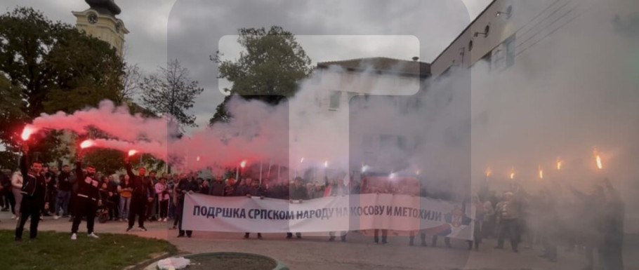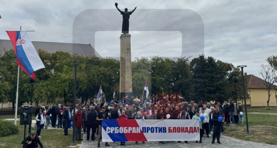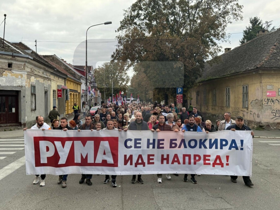 Građani su se okupili i u Rumi, gde su transparentima poslali poruke "Podrška Srbima sa Kosova i Metohije" i "Ruma se ne blokira! Ruma ide napred!".