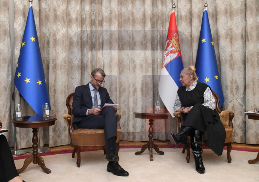 BEOGRAD - Ministarka građevinarstva, saobraćaja i infrastrukture Aleksandra Sofronijević sastala se danas sa ambasadorom Evropske unije u Srbiji Andreasom fon Bekeratom kome je poželela iskrenu dobrodošlicu i uspešan mandat u Srbiji i istakla da članstvo u Evropskoj uniji ostaje strateški cilj Srbije.