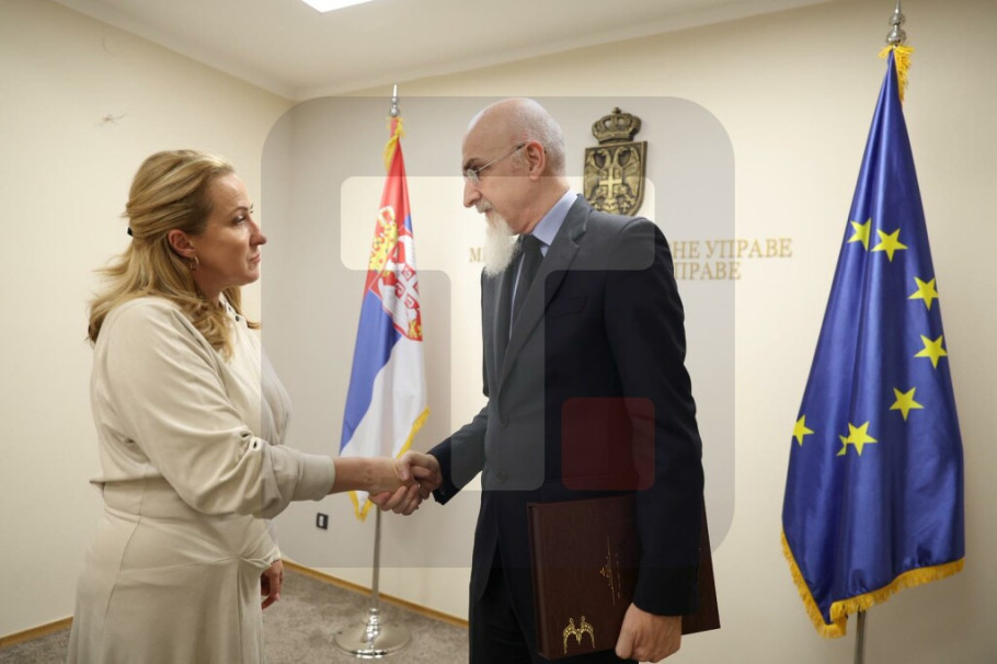 BEOGRAD - Ministarka državne uprave i lokalne samouprave Snežana Paunović sastala se danas sa ambasadorom Italije u Srbiji Lukom Gorijem, povodom nastavka dugogodišnje uspešne saradnje i unapređenja odnosa između dve zemlje.
