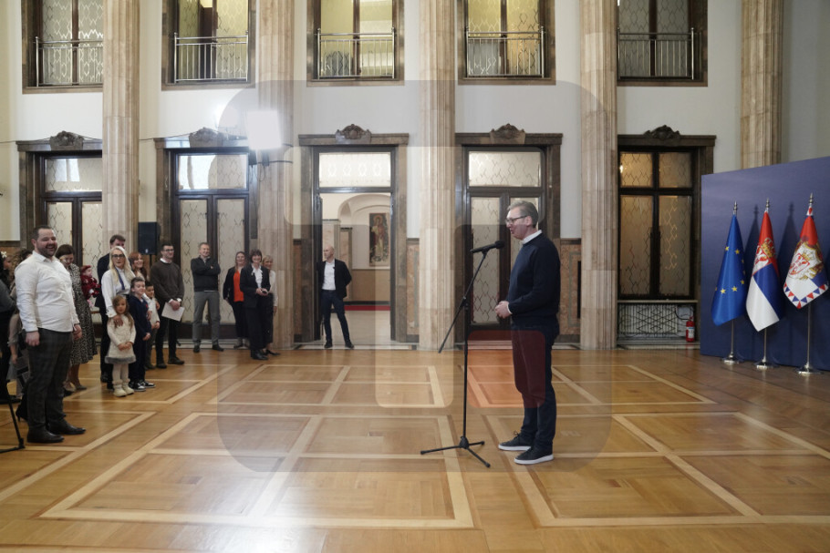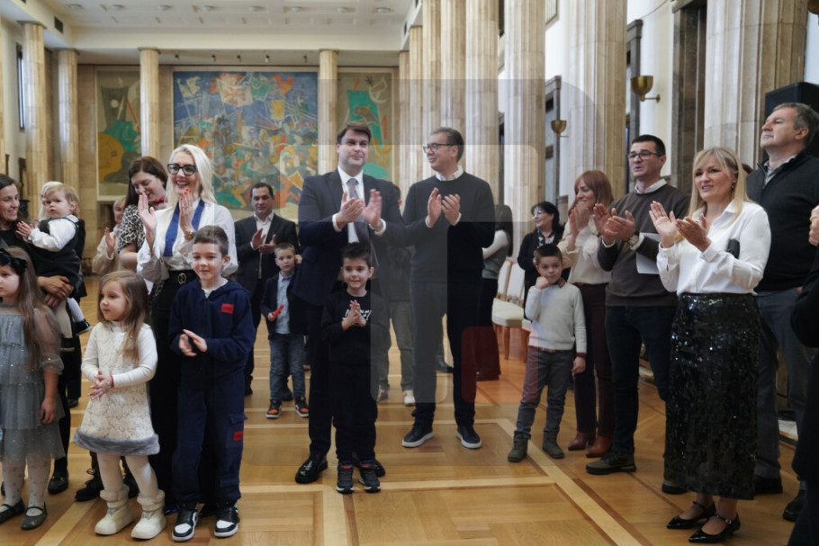 "Želim vam da ne stanete na ovome, nego da nastavite da imate još dece, jer su toliko lepa da je to potpuno neverovatno", rekao je Vučić.